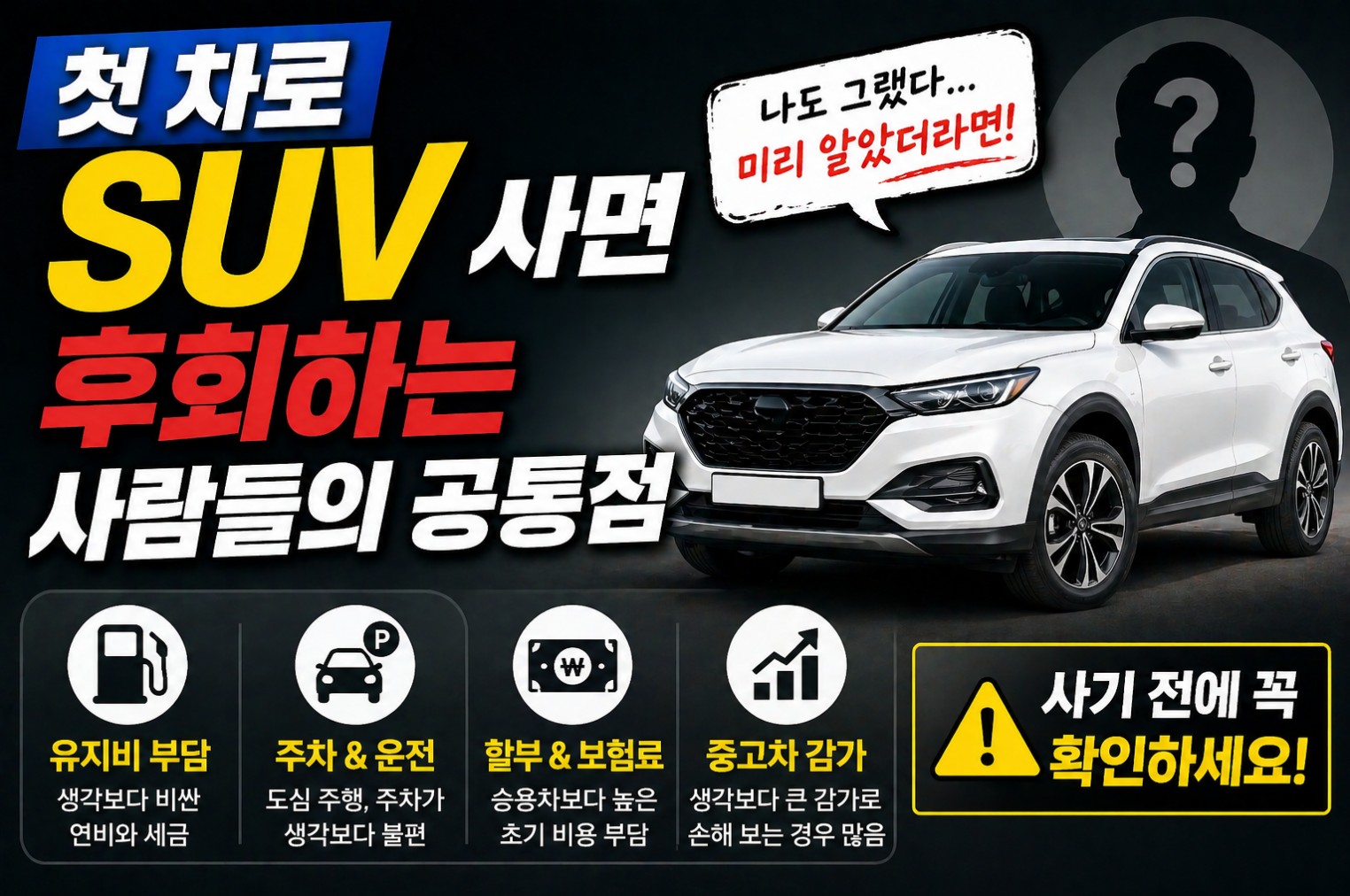 결국 첫 차는 욕심보다 기준이다. 내 생활 패턴과 비용 구조에 맞는 선택을 한다면 SUV는 충분히 만족도가 높은 선택이 될 수 있고, 그렇지 않다면 후회로 이어질 가능성이 높다.